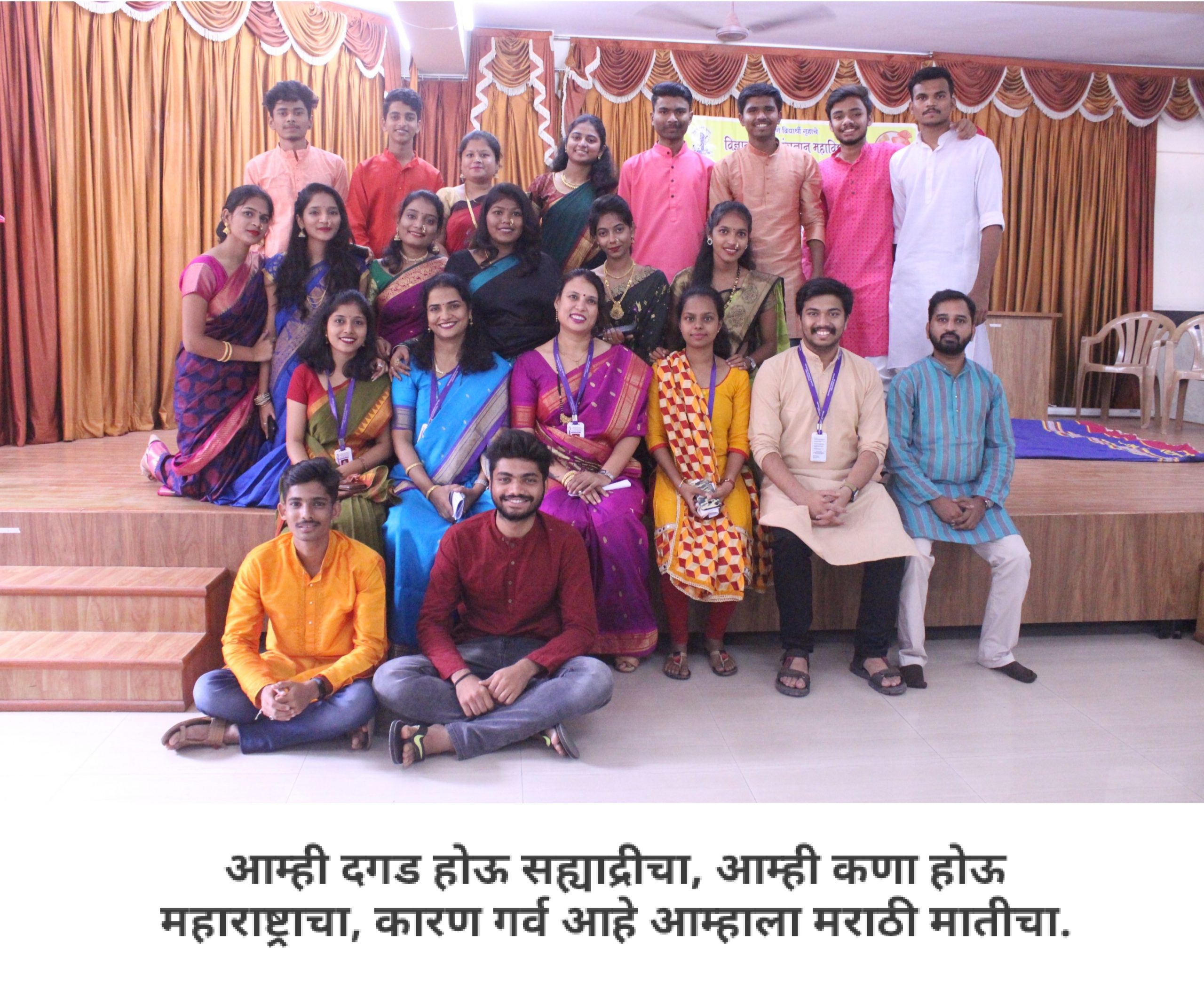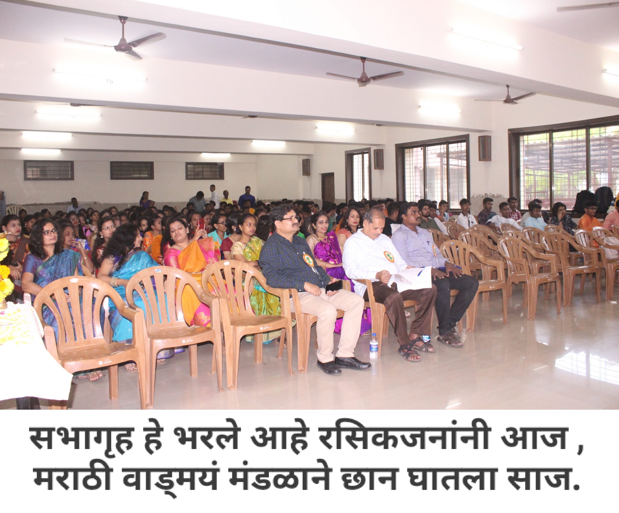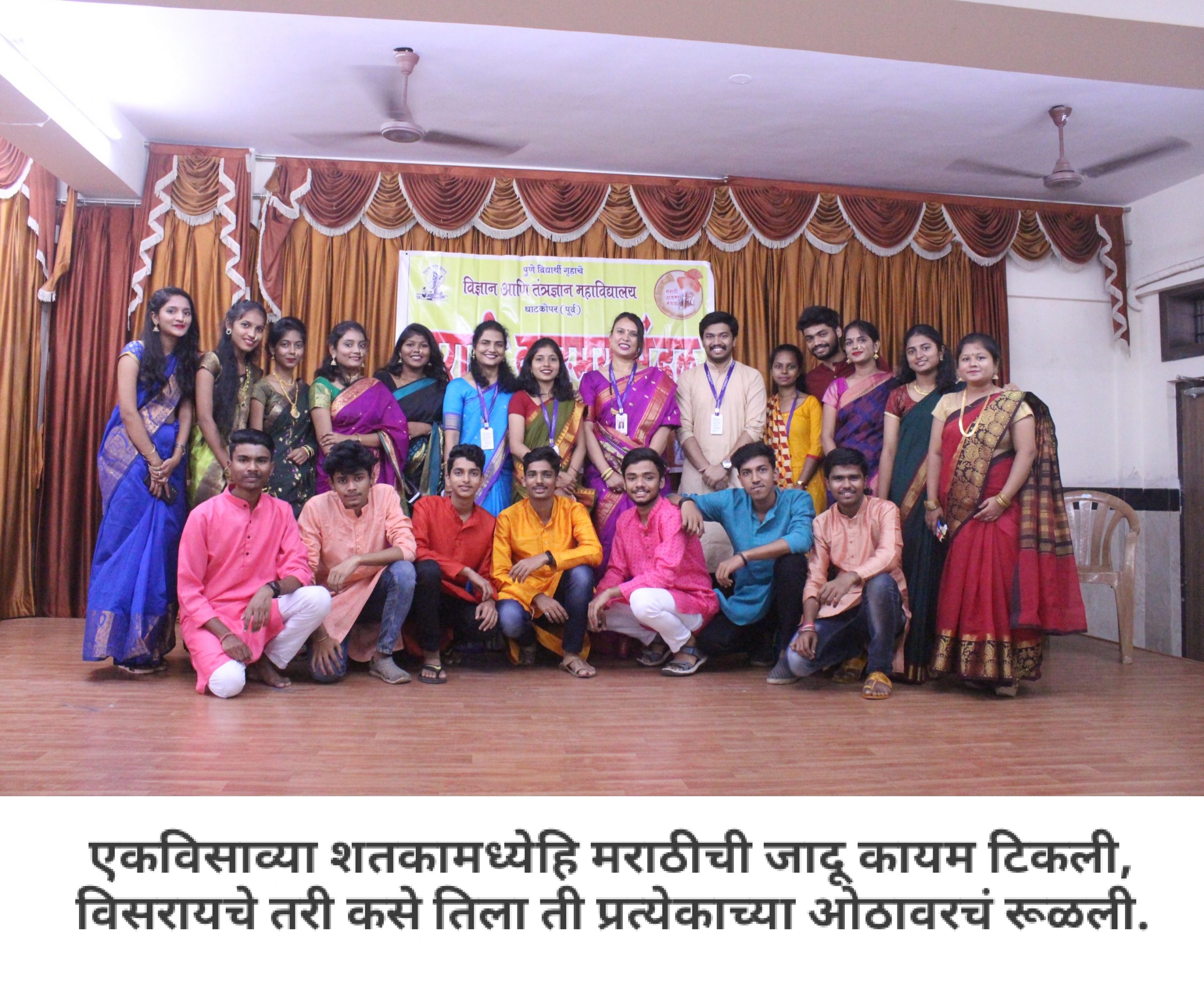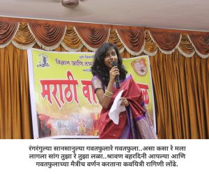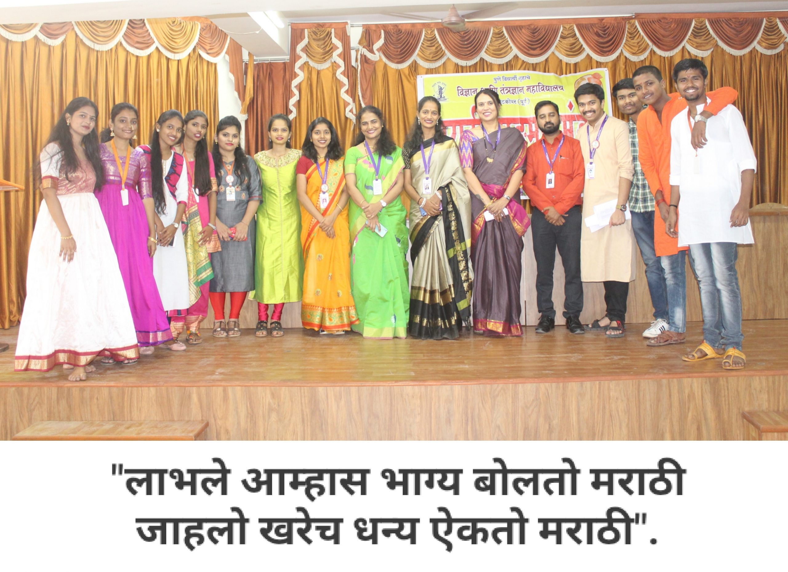 आपल्या महाविद्यालयात मराठी वाङ्मय मंडळ आहे, हे आपण जाणताच. महाविद्यालयीन पातळीवर विद्यार्थ्यांचा सर्वांगीण विकास व्हावा, विद्यार्थ्यांना हक्काचं व्यासपीठ मिळावं, त्यांच्यातील सुप्तगुण त्यांना ओळखता यावे, हे हेतू मनात ठेऊन, “मराठी वाङ्मय मंडळ” स्थापन करण्याची प्रथा पडली. मराठी वाङ्मय मंडळाच्या वतीने, वर्षभर विविध सपर्धा आणि कार्यक्रमही आयोजित करण्यात येतात. प्रत्येक कार्यक्रमात आपण, मराठी भाषेचा सन्मान, तिचा गुणगौरव करतो. भावना तीच पण प्रत्येक कार्यक्रमागणिक स्वरूप मात्र आणखी सुंदर!