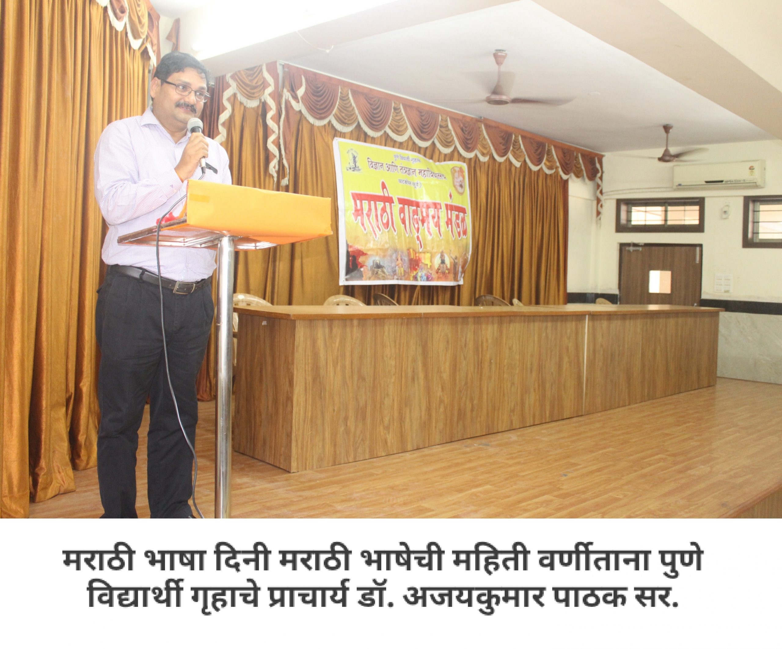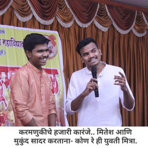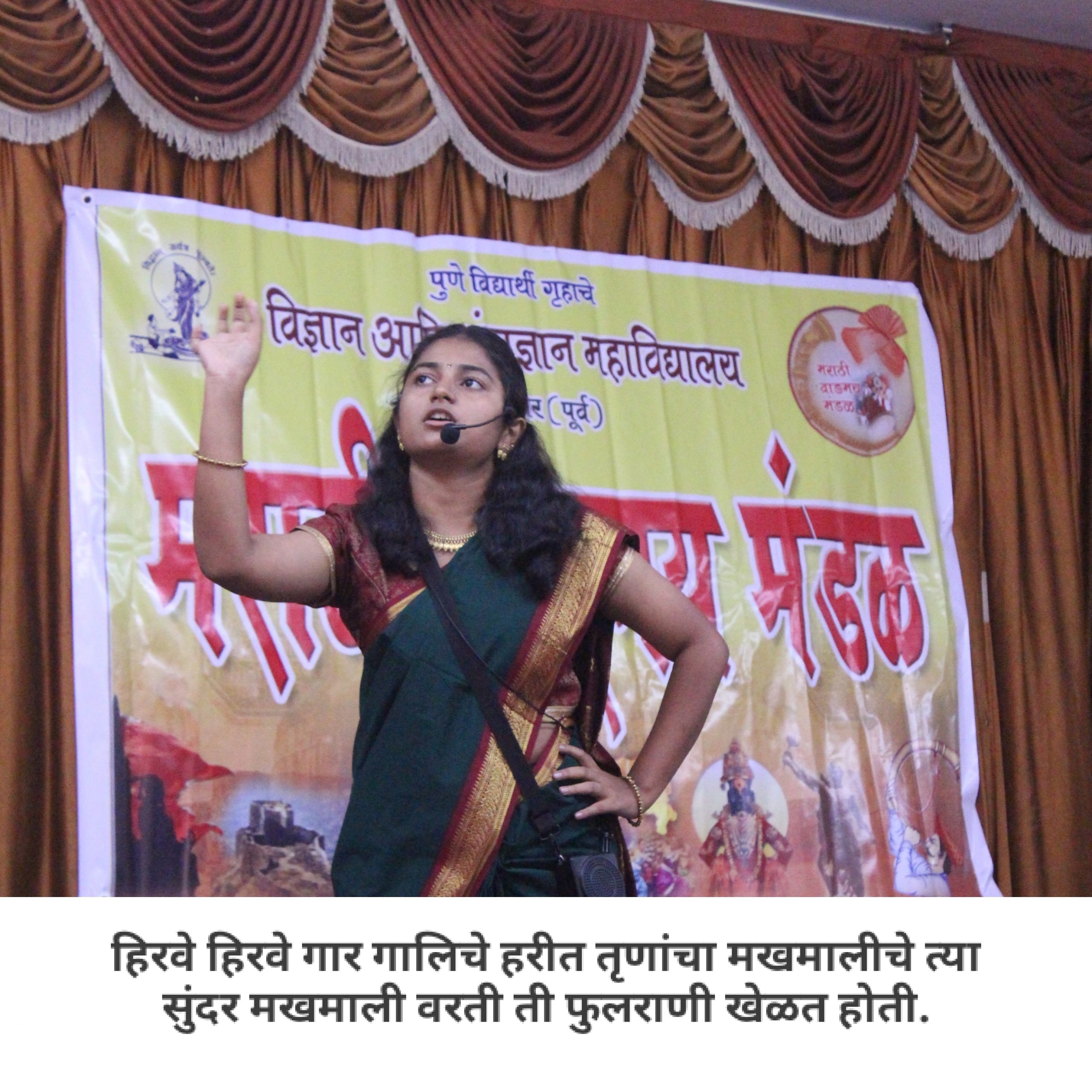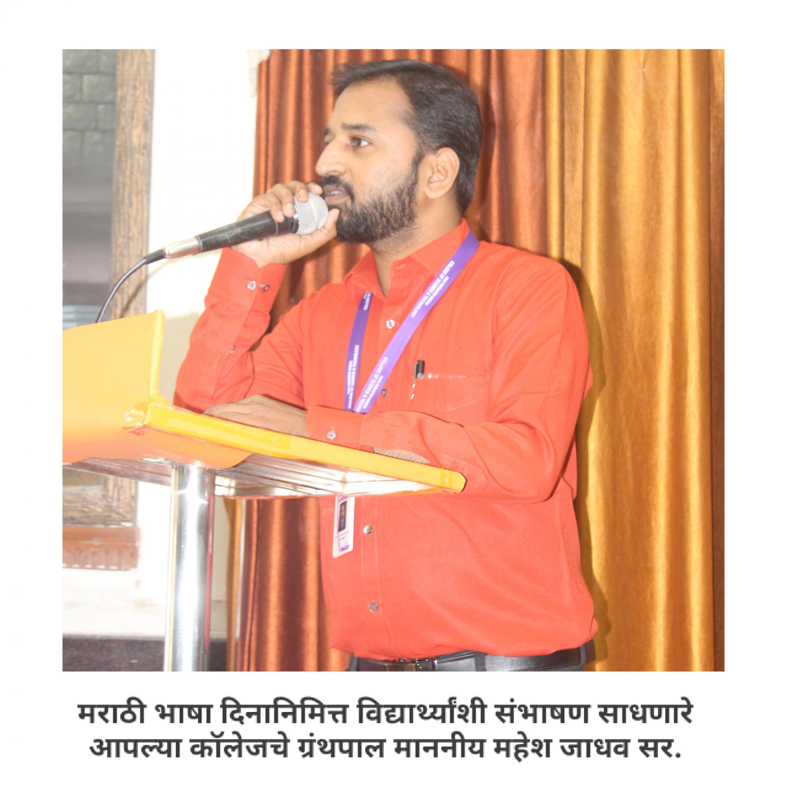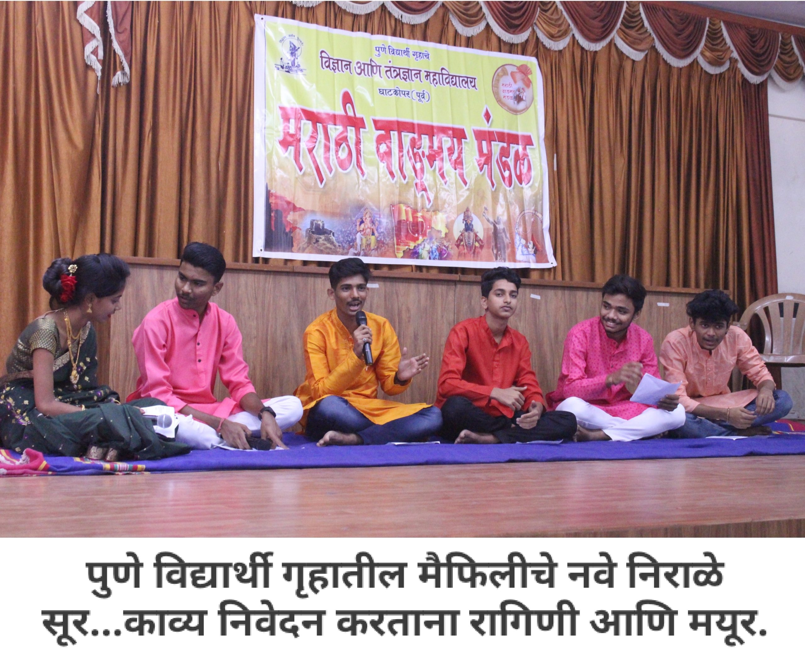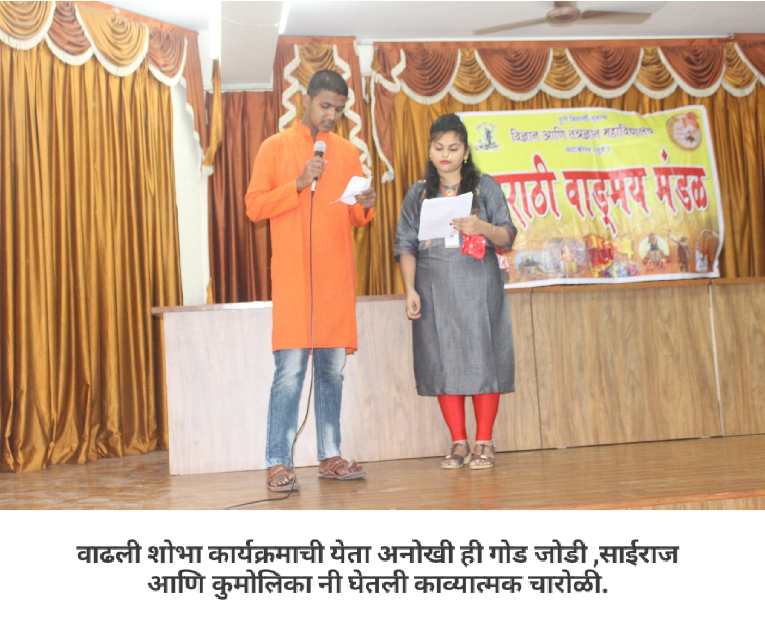 आपल्या महाविद्यालयात मराठी वाङ्मय मंडळ आहे, हे आपण जाणताच. महाविद्यालयीन पातळीवर विद्यार्थ्यांचा सर्वांगीण विकास व्हावा, विद्यार्थ्यांना हक्काचं व्यासपीठ मिळावं, त्यांच्यातील सुप्तगुण त्यांना ओळखता यावे, हे हेतू मनात ठेऊन, “मराठी वाङ्मय मंडळ” स्थापन करण्याची प्रथा पडली. मराठी वाङ्मय मंडळाच्या वतीने, वर्षभर विविध सपर्धा आणि कार्यक्रमही आयोजित करण्यात येतात. प्रत्येक कार्यक्रमात आपण, मराठी भाषेचा सन्मान, तिचा गुणगौरव करतो. भावना तीच पण प्रत्येक कार्यक्रमागणिक स्वरूप मात्र आणखी सुंदर!