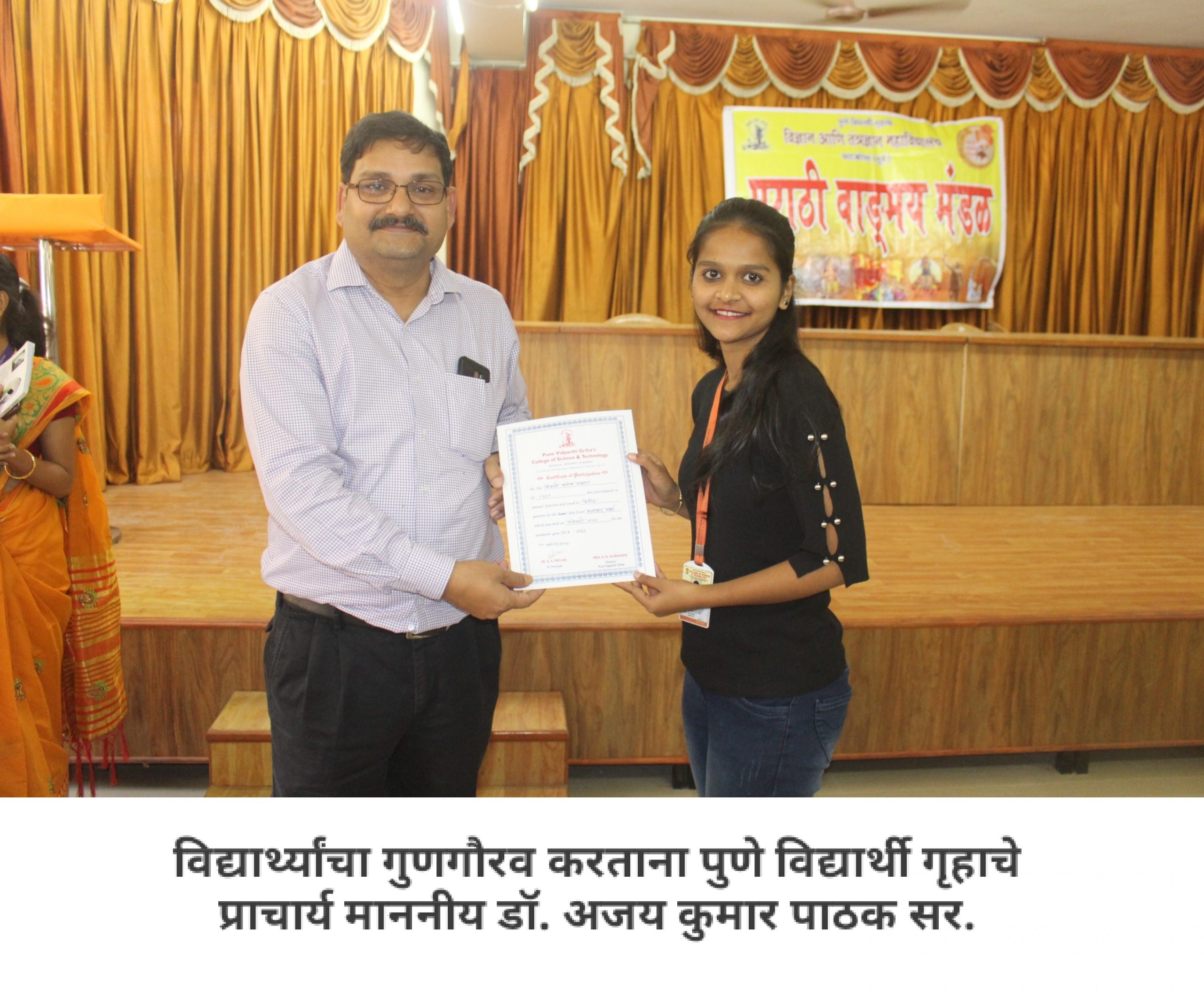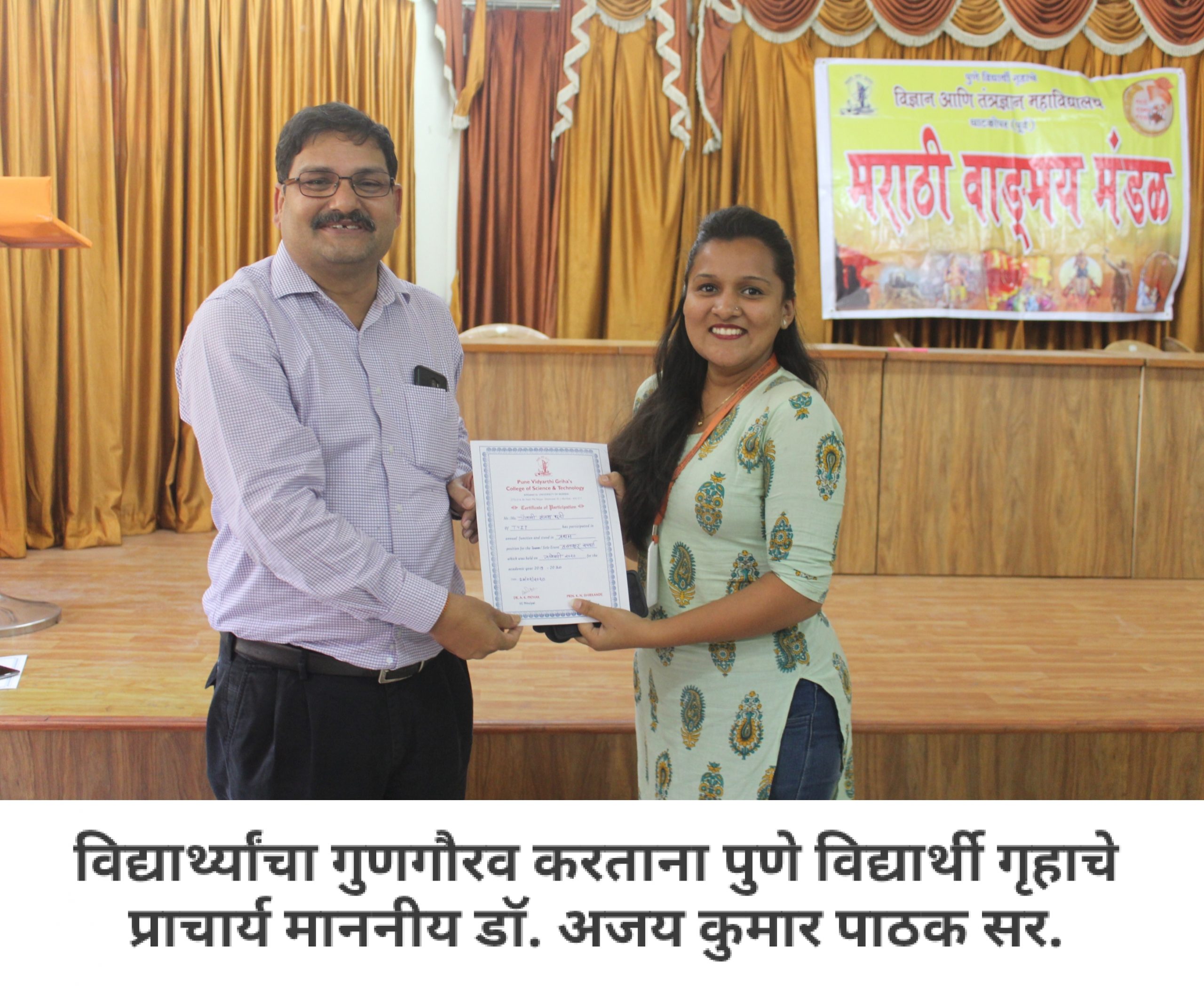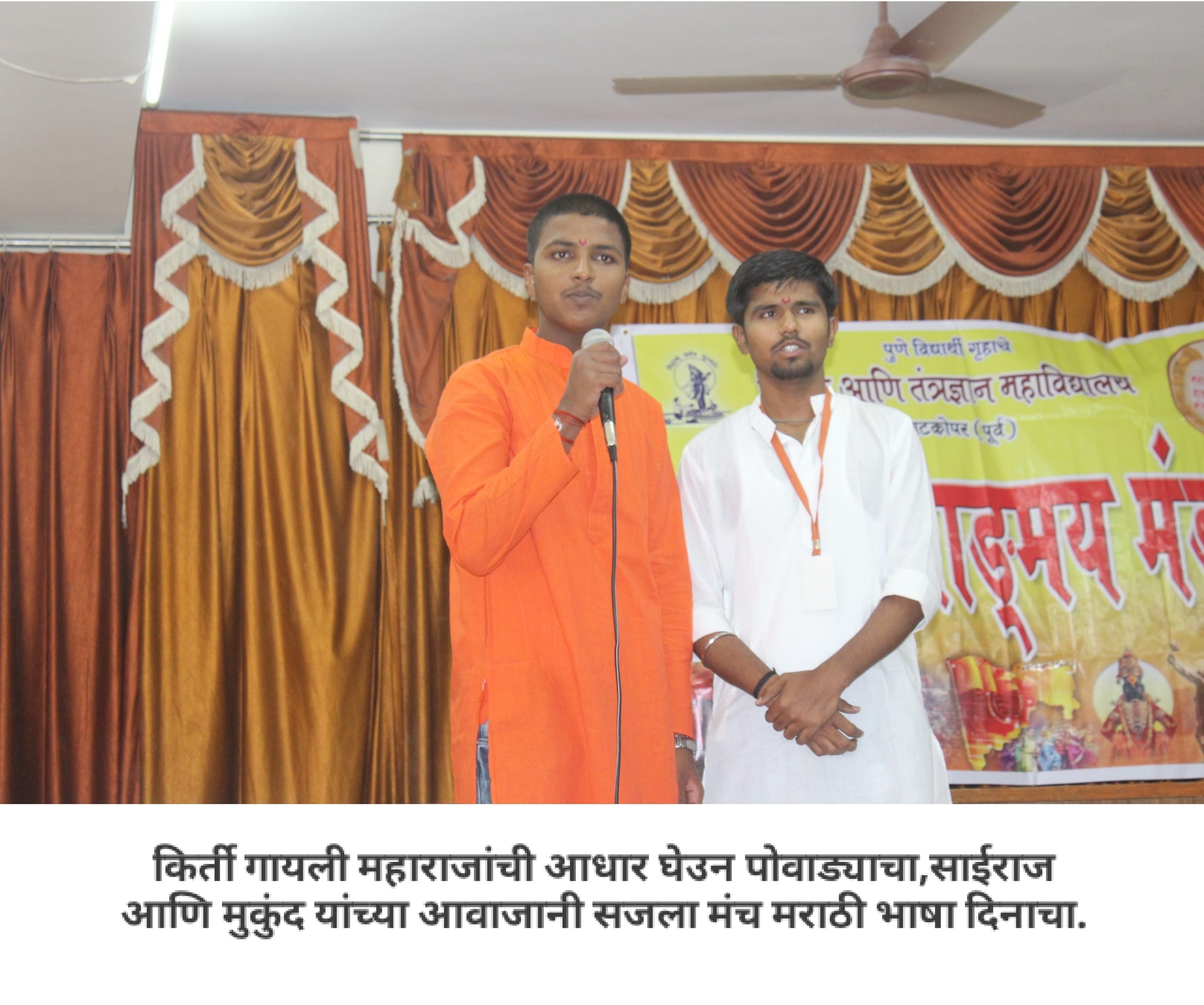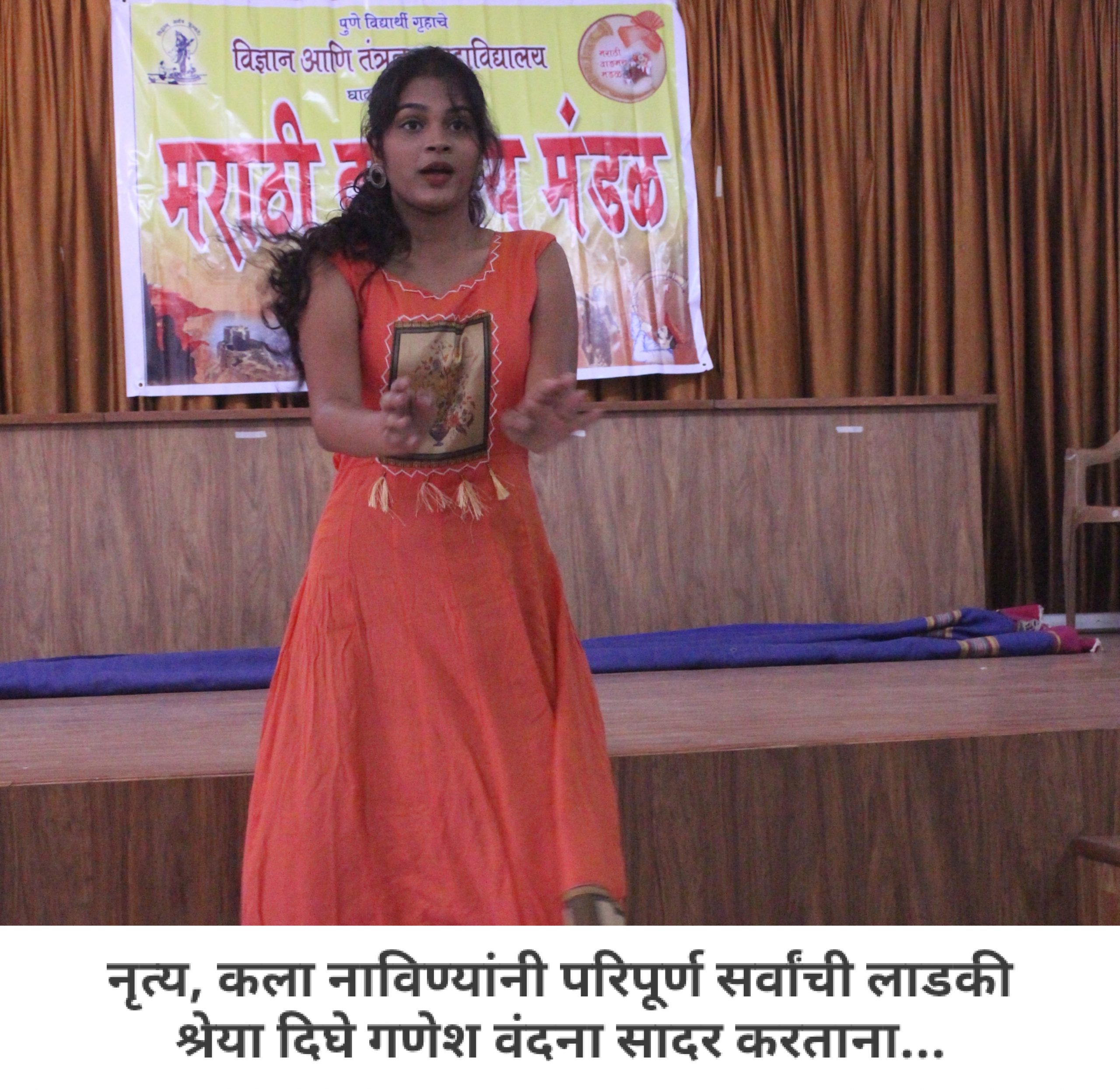 आपल्या महाविद्यालयात मराठी वाङ्मय मंडळ आहे, हे आपण जाणताच. महाविद्यालयीन पातळीवर विद्यार्थ्यांचा सर्वांगीण विकास व्हावा, विद्यार्थ्यांना हक्काचं व्यासपीठ मिळावं, त्यांच्यातील सुप्तगुण त्यांना ओळखता यावे, हे हेतू मनात ठेऊन, “मराठी वाङ्मय मंडळ” स्थापन करण्याची प्रथा पडली. मराठी वाङ्मय मंडळाच्या वतीने, वर्षभर विविध सपर्धा आणि कार्यक्रमही आयोजित करण्यात येतात. प्रत्येक कार्यक्रमात आपण, मराठी भाषेचा सन्मान, तिचा गुणगौरव करतो. भावना तीच पण प्रत्येक कार्यक्रमागणिक स्वरूप मात्र आणखी सुंदर!