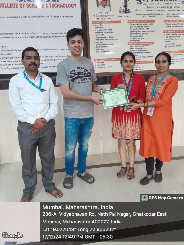 On 3rd & 4th December 2024, we participated in PRAKHAR 2.0, an exciting inter-college fest organized by Ramniranjan Jhunjhunwala College of Arts, Science & Commerce (Empowered Autonomous Status). This grand event brought together students from various colleges to showcase their talents, skills, and creativity across multiple competitions. Our team actively participated in various events, demonstrating excellence, teamwork, and dedication. Through our hard work and enthusiasm, we achieved medals and certificates, making our college proud. A celebration of talent, competition, and victory – PRAKHAR 2.0 was an unforgettable experience!