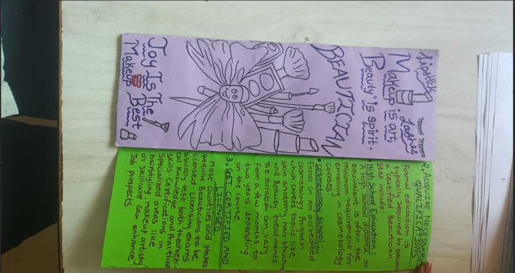 On 20th December 2024, Career Project (CP) members creatively designed brochures, booklets, and pamphlets on their chosen career topics. This initiative aimed to present career information in an engaging and visually appealing manner, helping students explore various professions, required skills, and future opportunities. The well-crafted materials served as valuable resources for career guidance and awareness.