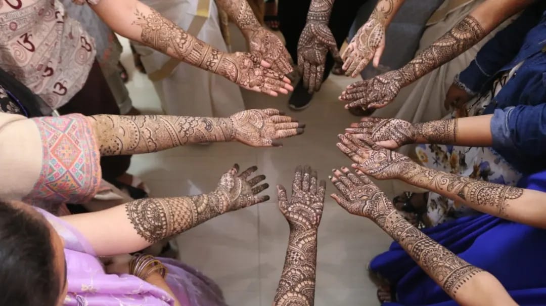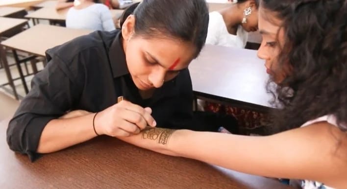 Mehendi Competition: Students got the opportunity to show their artistic design talent. Time limit was for an hour only
