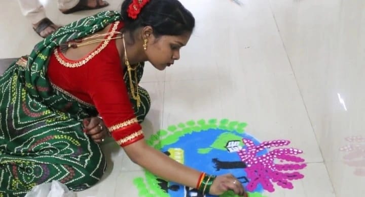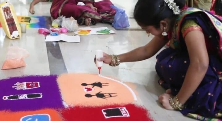 Rangoli Competition: Students got the opportunity to show their artistic design talent. Time limit was for an hour only