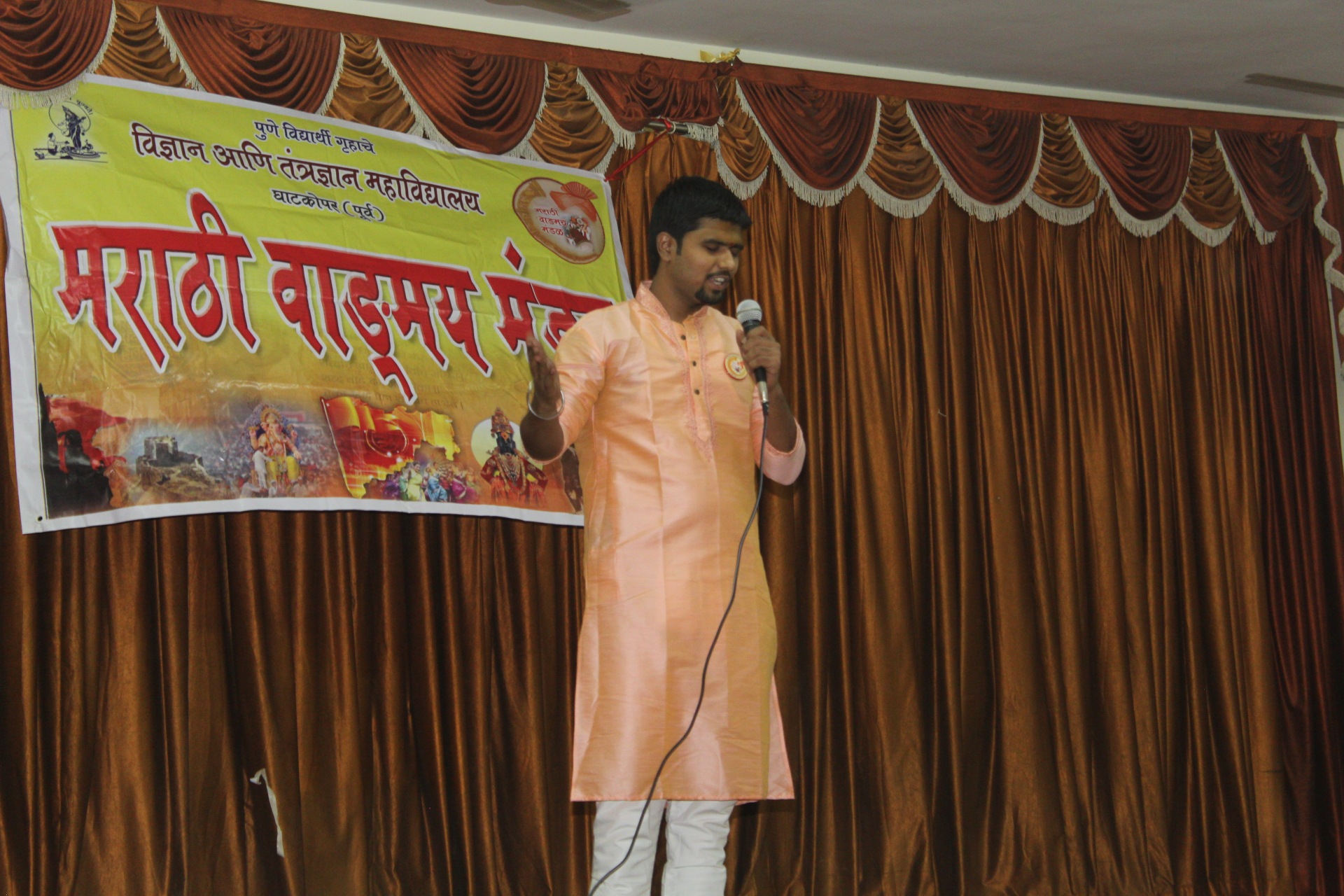 आपल्या महाविद्यालयात मराठी वाङ्मय मंडळ आहे, हे आपण जाणताच. महाविद्यालयीन पातळीवर विद्यार्थ्यांचा सर्वांगीण विकास व्हावा, विद्यार्थ्यांना हक्काचं व्यासपीठ मिळावं, त्यांच्यातील सुप्तगुण त्यांना ओळखता यावे, हे हेतू मनात ठेऊन, “मराठी वाङ्मय मंडळ” स्थापन करण्याची प्रथा पडली. मराठी वाङ्मय मंडळाच्या वतीने, वर्षभर विविध सपर्धा आणि कार्यक्रमही आयोजित करण्यात येतात. प्रत्येक कार्यक्रमात आपण, मराठी भाषेचा सन्मान, तिचा गुणगौरव करतो. भावना तीच पण प्रत्येक कार्यक्रमागणिक स्वरूप मात्र आणखी सुंदर!